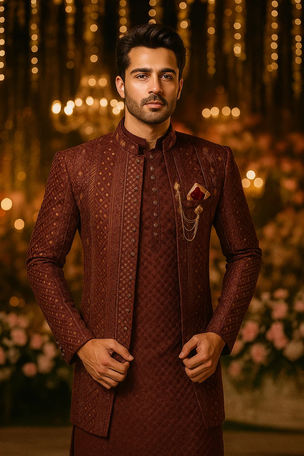 Matching Mehroon Sequence Work Prince Coat & Kurta Pajama