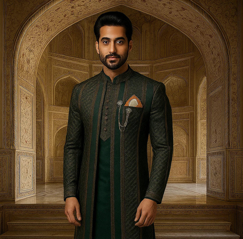 Ferozi Matching Sequence Work Prince Coat & Kurta Pajama
