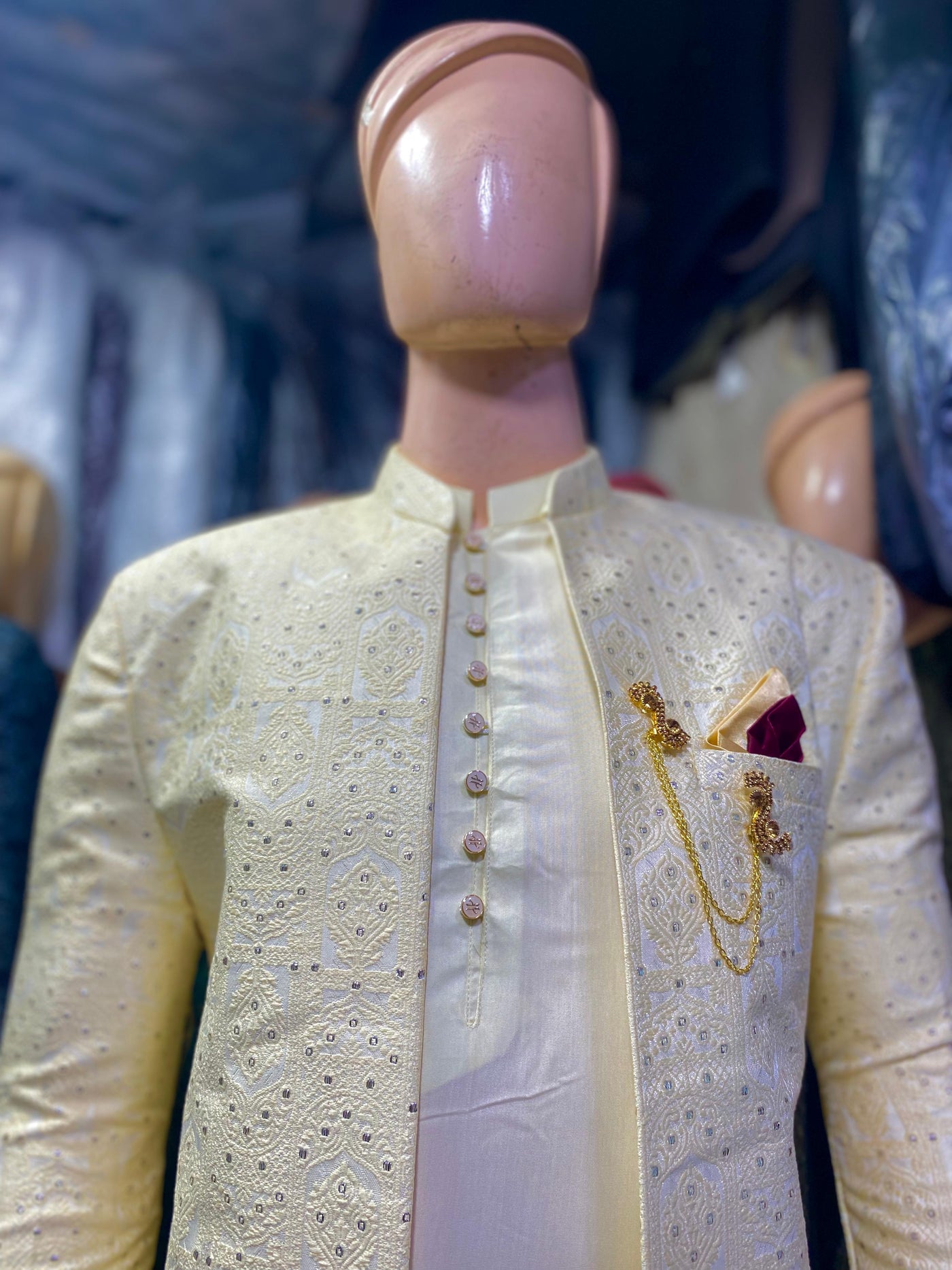 KC Collection is a premium Pakistani men’s wedding clothing brand, celebrating the essence of tradition with a modern touch. We specialize in crafting luxurious Prince Coats, Waistcoats, and Kurta Pajama sets designed for grooms and wedding guests who value elegance, comfort, and cultural pride. Each outfit is a masterpiece — blending rich fabrics, intricate embroidery, and refined tailoring to reflect sophistication and heritage. At KC Collection, we believe every groom deserves to look royal on his big day, which is why we bring you regal designs, impeccable craftsmanship, and a flawless fit for every celebration. From mehndi to walima, KC Collection is your trusted choice for premium men’s wedding wear that stands out in every moment.