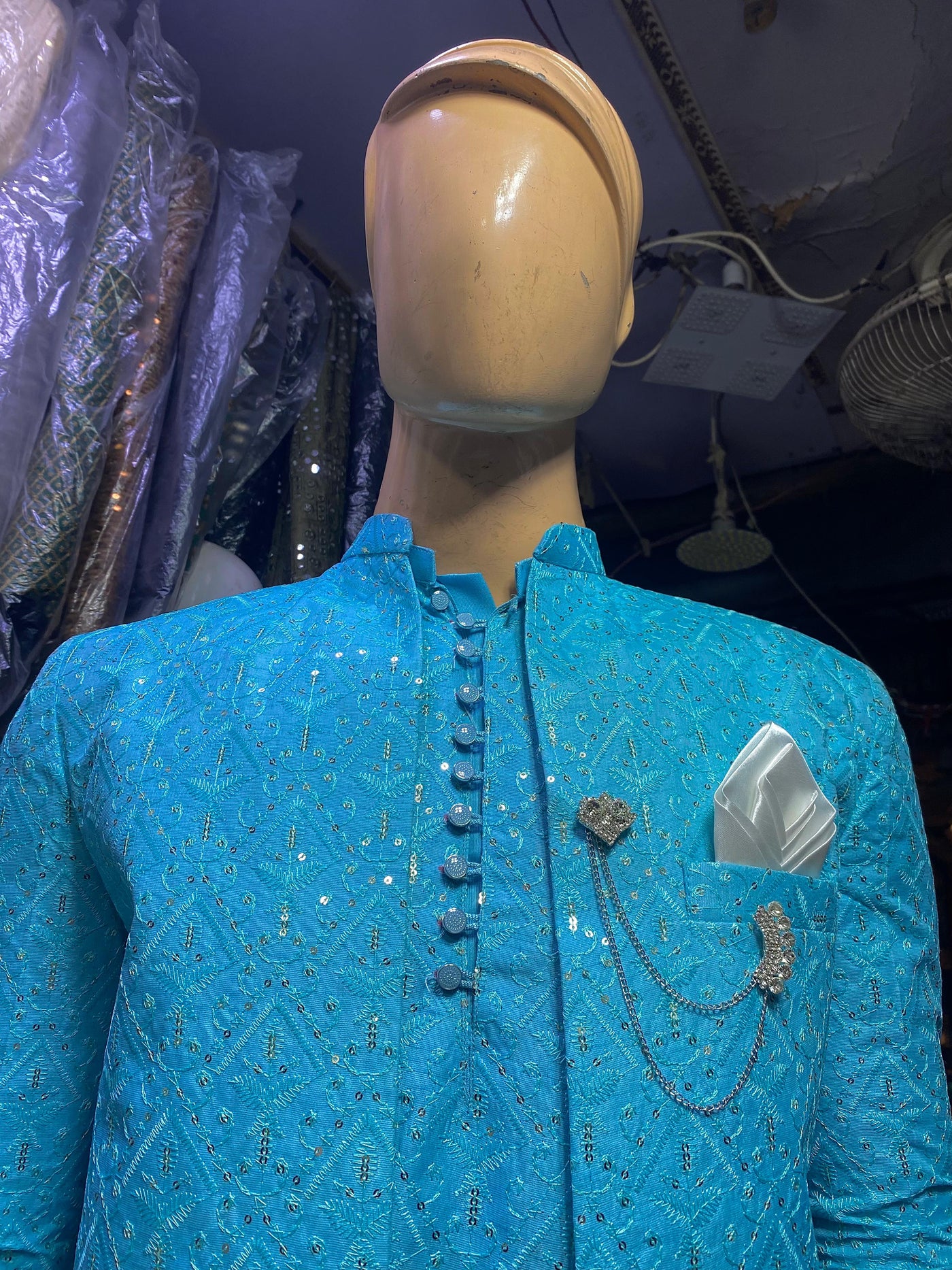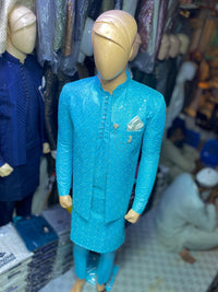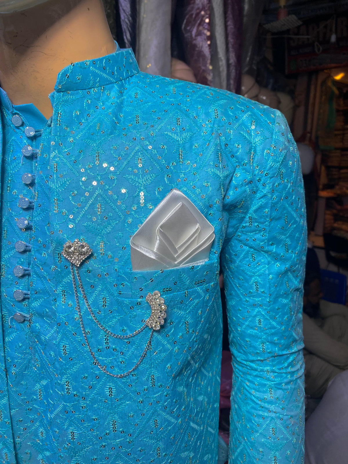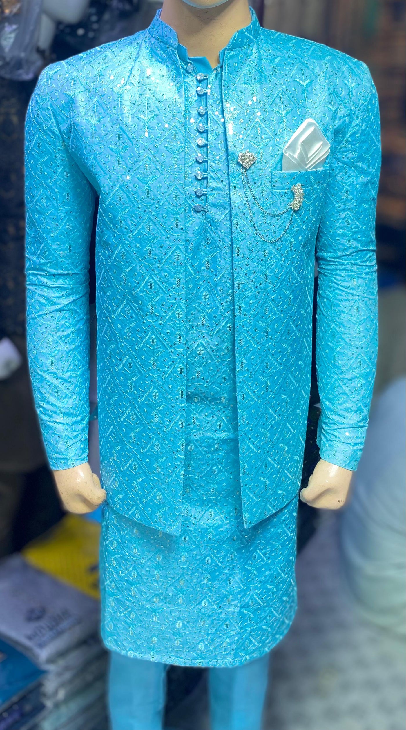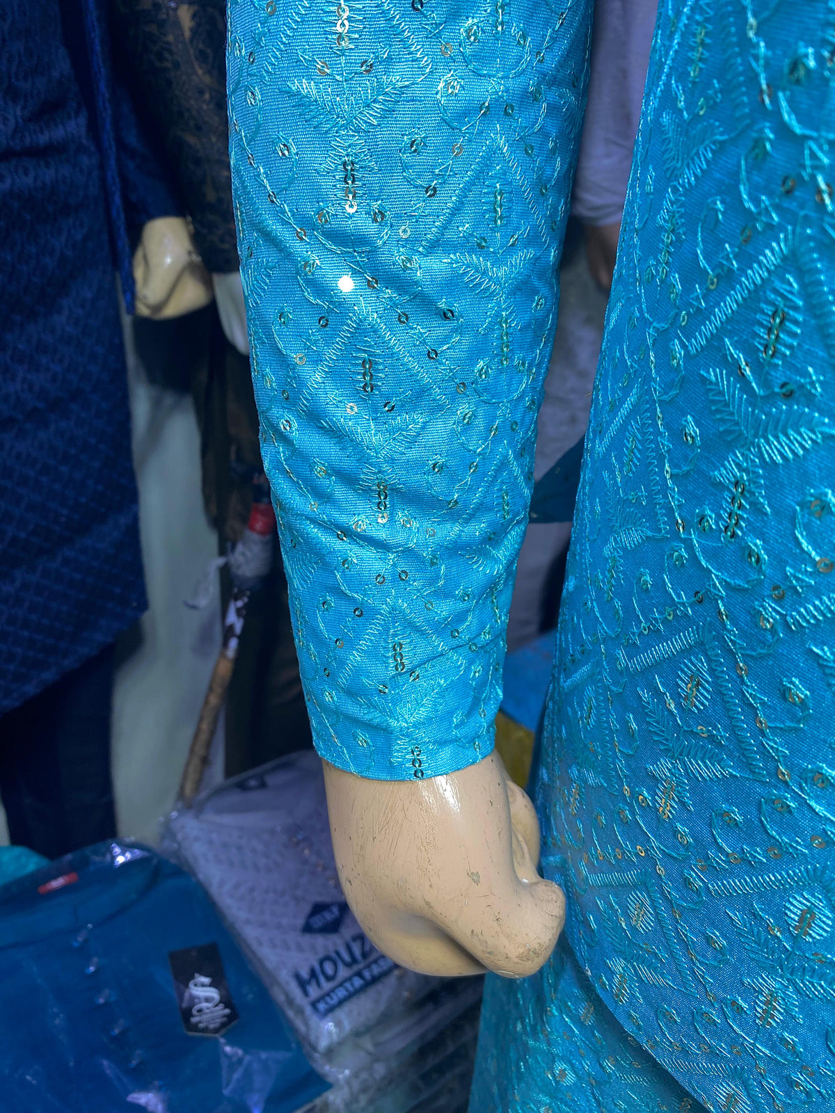 Ferozi Matching Sequence Work Prince Coat & Kurta Pajama