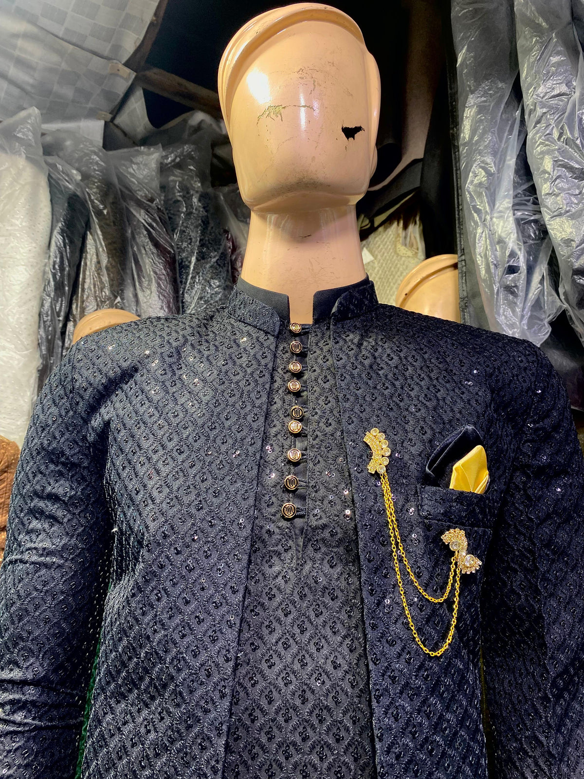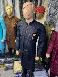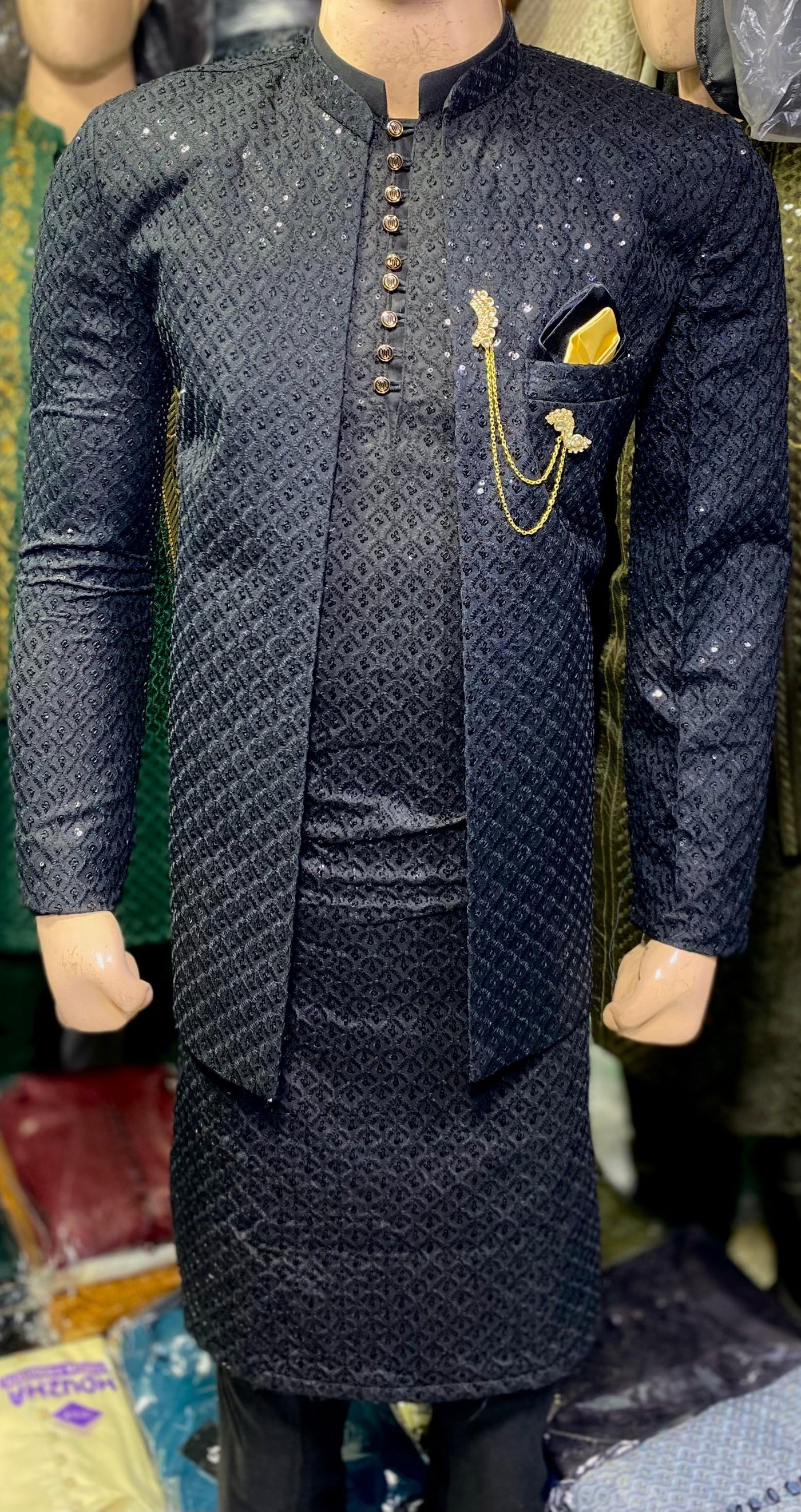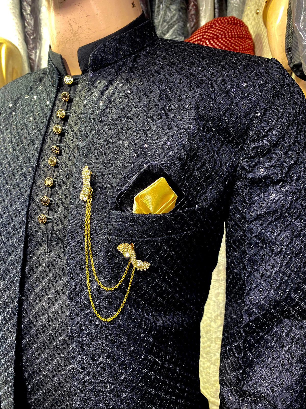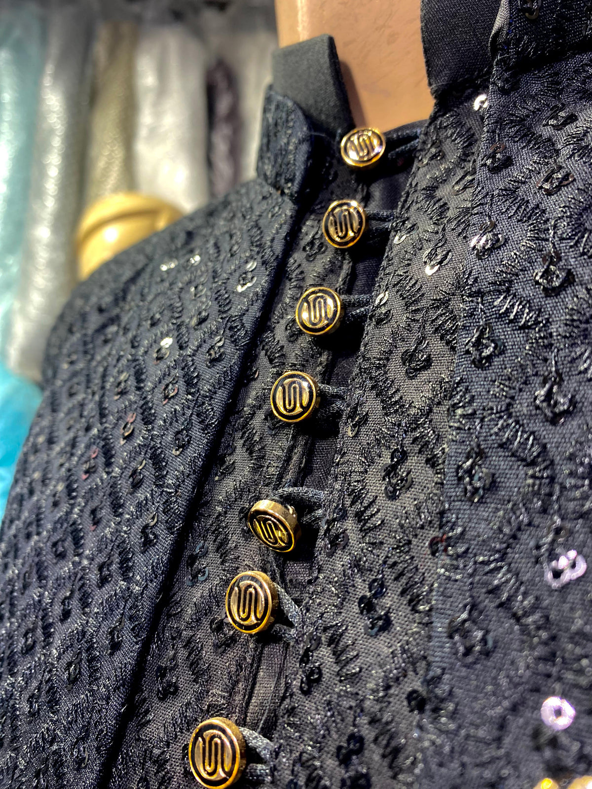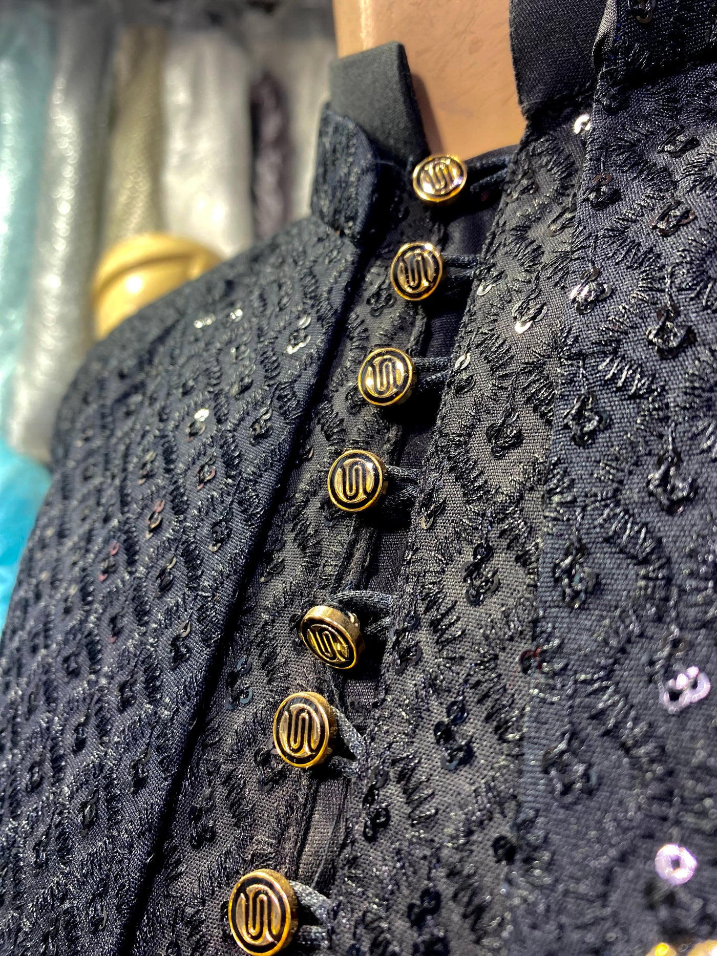 Matching Black Sequence Work Prince Coat & Kurta Pajama