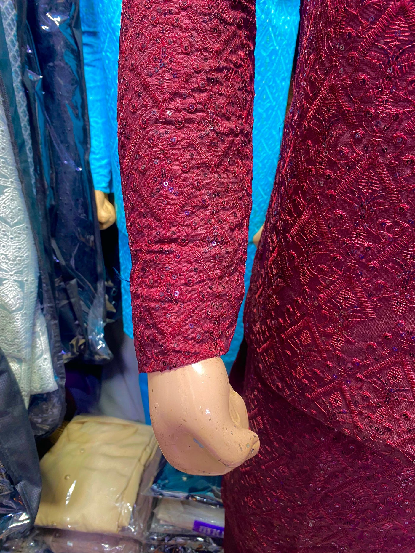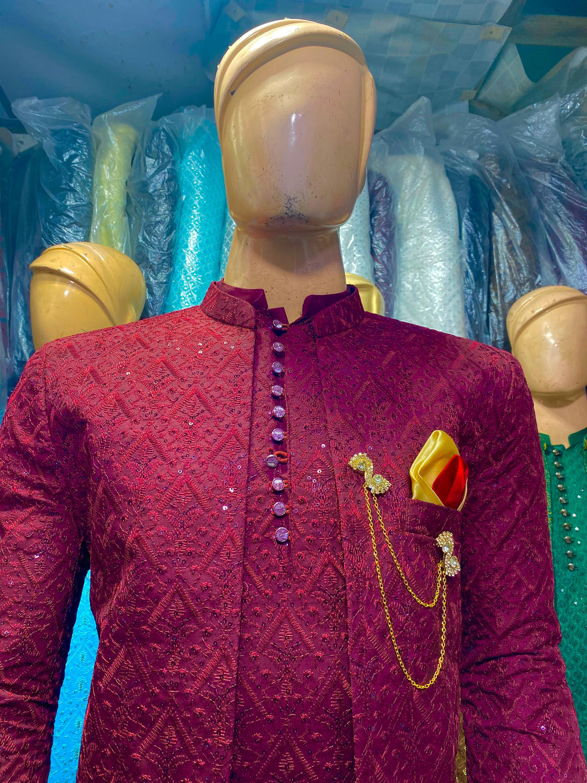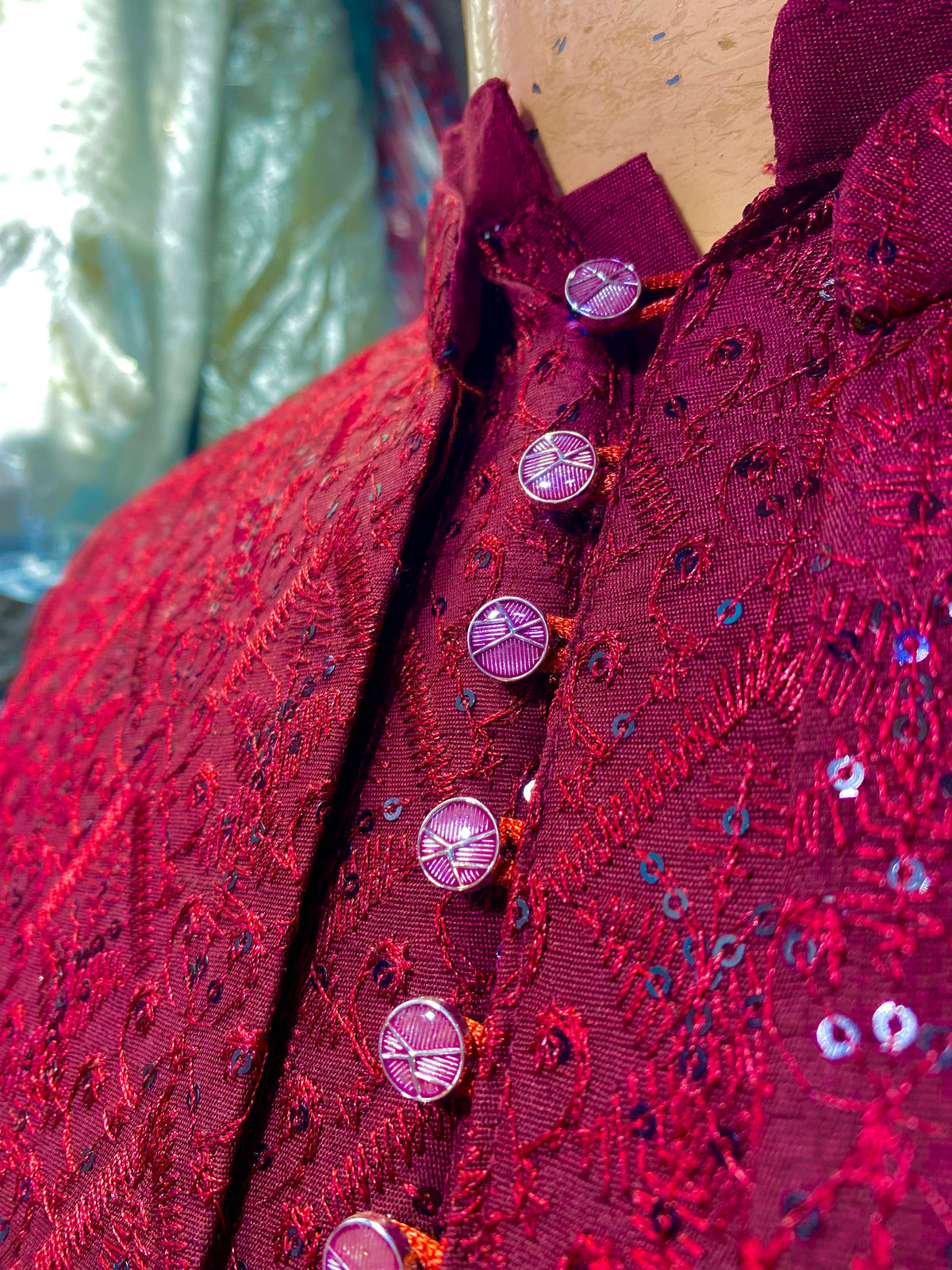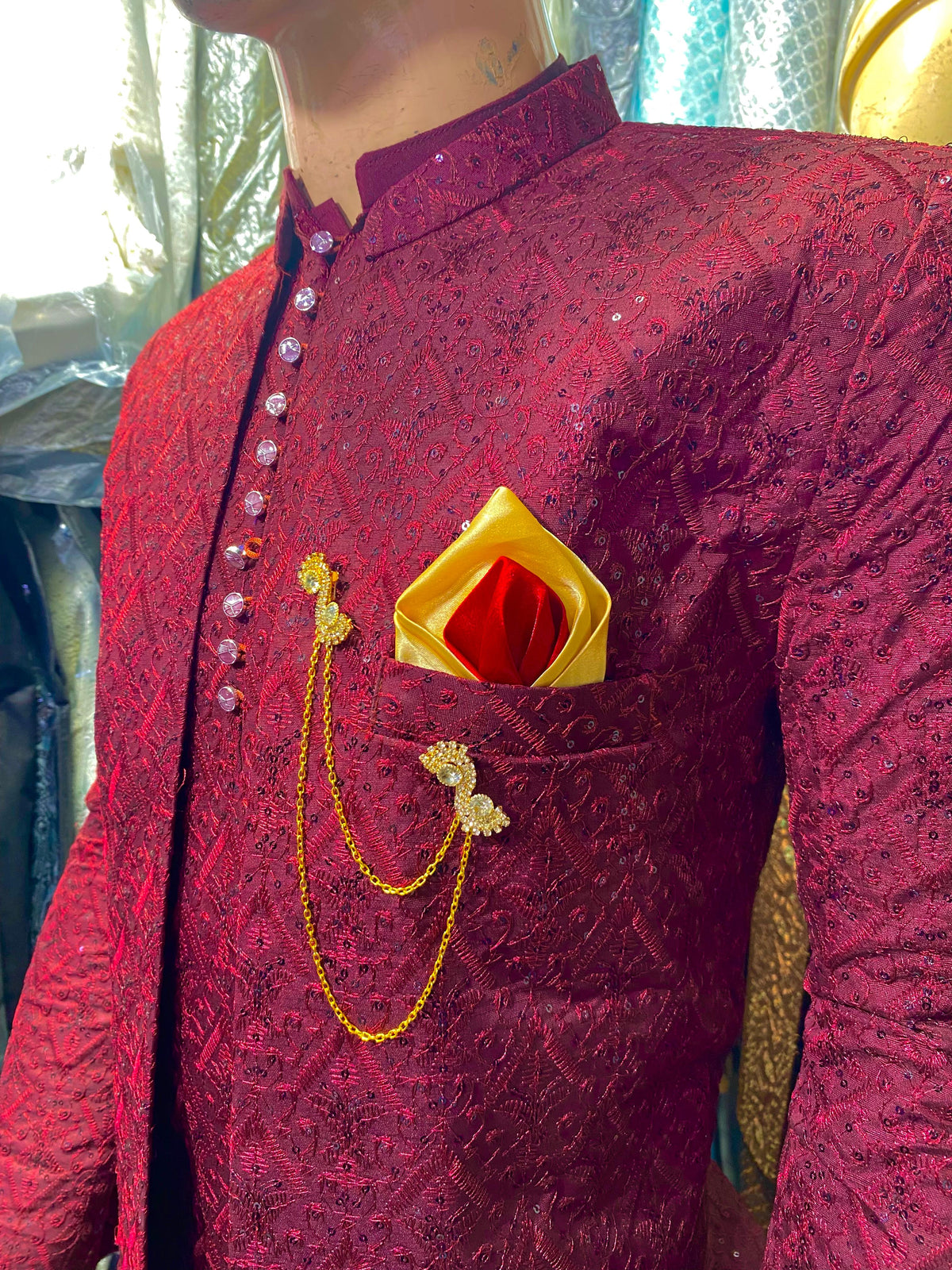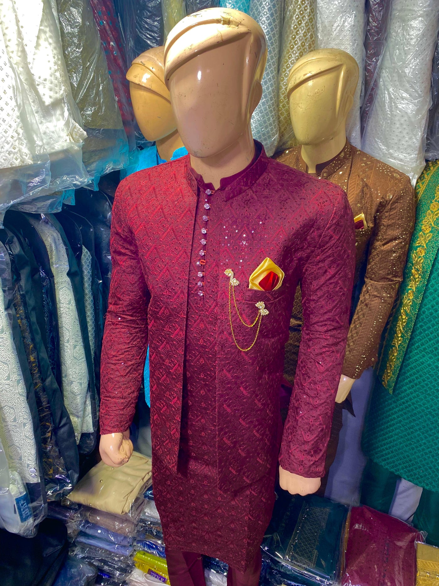 Matching Mehroon Sequence Work Prince Coat & Kurta Pajama
